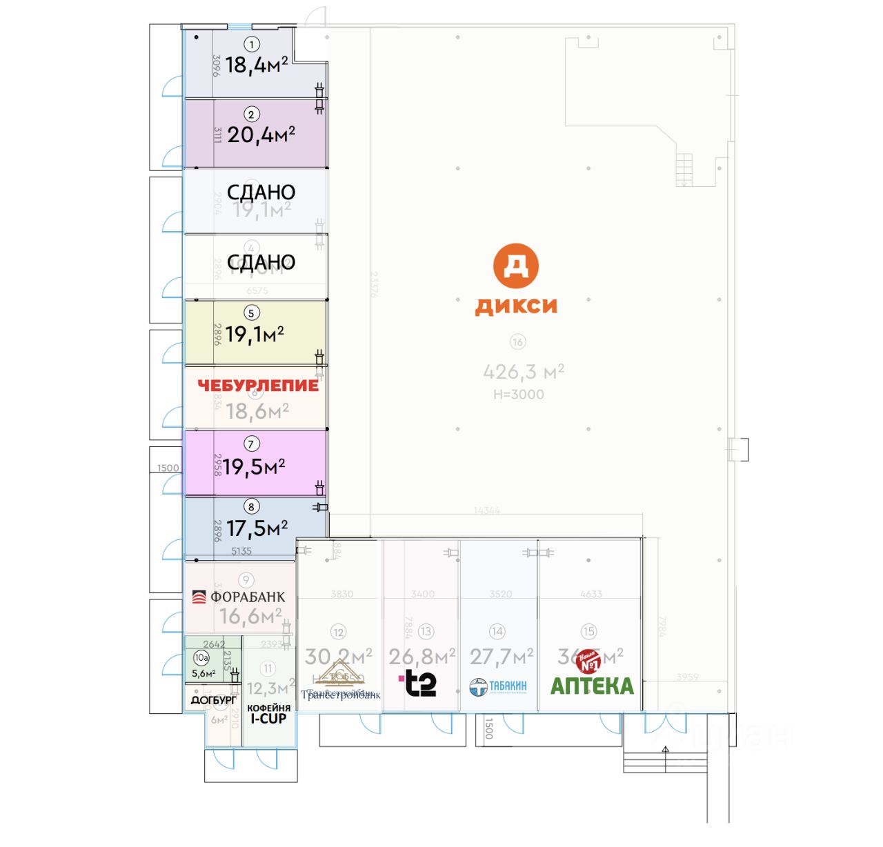 426,3 м2 264 000 000 ₽ 2 315 250 ₽. Дикси! - Высота потолков 3,6 м