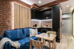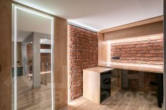 Есть вариант Люкс , два типа помещений. В варианте Люкс большая гостиная, полноценный рабочий стол, холодильник, посудомоечная машина, большая ванна, в спальне 2 шкафа, 2 санузла ( наверху и внизу), теплый пол в санузлах.