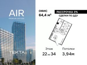 Продается помещение свободного назначения 64.40 м² на 22 этаже бизнес-центра AIR.