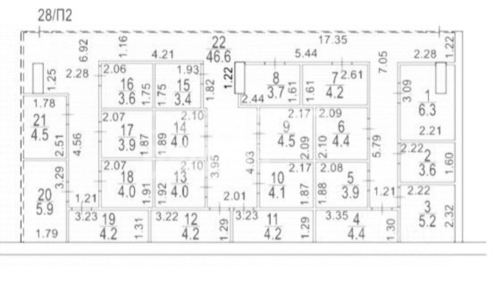 Пространство поделено на 21 кладовое помещение, разной площади.
