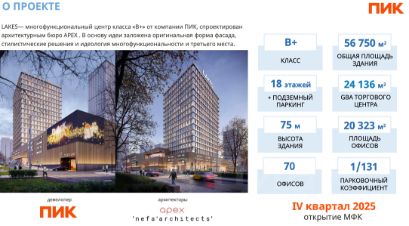На продажу предлагается офисное помещение класса А площадью 123,32 кв. м на 7 этаже в многофункциональном комплексе МФК "LAKES". Помещение под отделку. Высокая доступность - 4 минуты пешком от метро "Озерная". Оптимальная площадь, наилучшая планировка из предлагавшихся застройщиком: правильная форма помещения, панорамное остекление на 2 стороны - 9 окон и отсутствие колонн - возможность сделать любую планировку с высокой инсоляцией и комфортом сотрудников. Вмещает до 20 рабочих мест. Потолки 3,8 м. Мокрая зона, которую можно использовать для кухни / туалета или под офисную часть, на этаже есть общий туалет, 5 лифтов. Хороший этаж, панорамный вид на лес. Как следствие высокая ликвидность и стоимость помещения относительно других помещений бизнес-центра. Сдача объекта: ноябрь 2025г. (документы застройщиком поданы), после чего можно начинать делать ремонт. Регистрация собственности застройщика февраль 2026г. На первых этажах здания торговый центр с фудкортом и ресторанной зоной, фитнес-центр (DDX Fitness). Здание построено, заканчиваются отделочные работы МОПов. В б/ц всего 70 офисов, вокруг большая зона введенных и достраивающихся новостроек, в ближайшем окружении нет аналогичных качественных предложений с высокой доступностью от метро и качеством отделки. Объявление реальное, прямая продажа от собственника.
