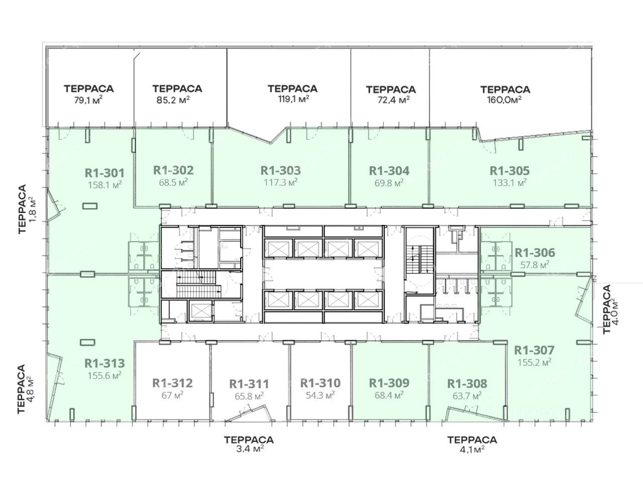 - Размер типового этажа: 1640;