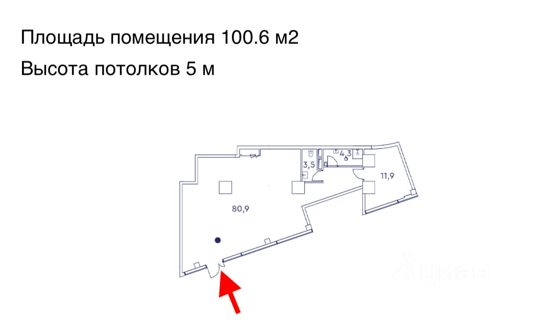 Предлагается к продаже помещение свободного назначения площадью 100.6 м²
