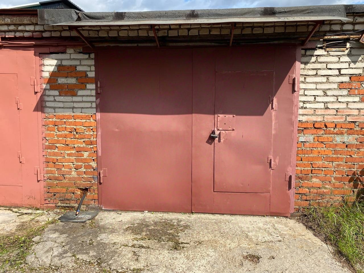 Размеры въездных ворот ширина 2.5 м. х высота 2,1 м. От закрытых ворот до стены 5,9 м.