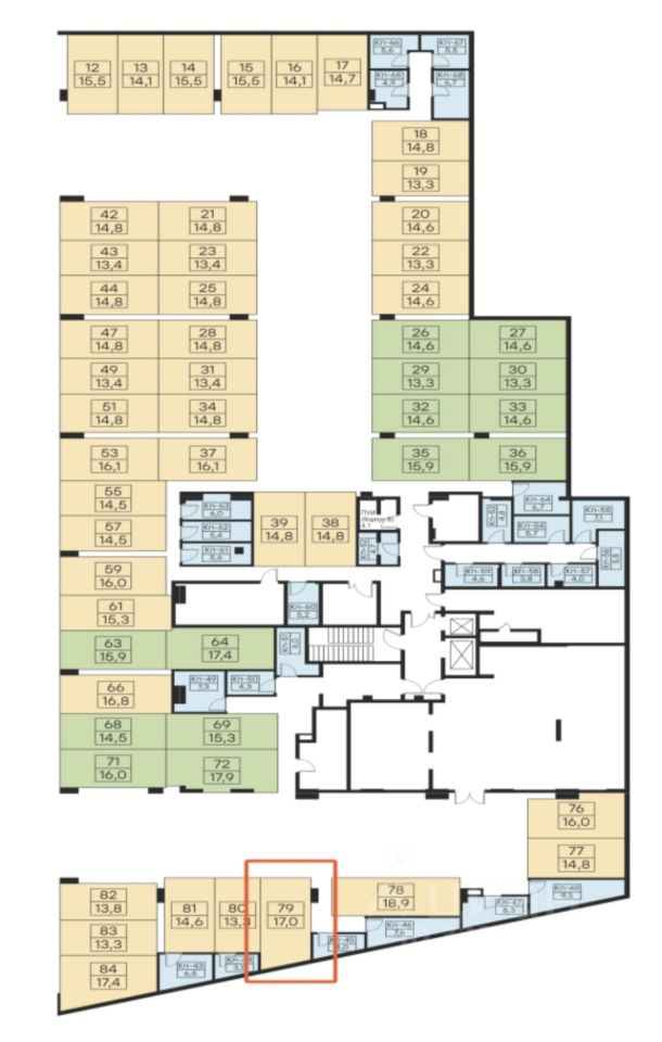 Машиноместо большой площади в ЖК Level Бауманская с возможностью расположения шкафа у стены, рядом с входом в лифты корпуса B.