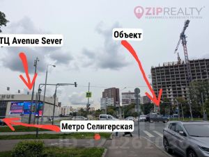 Объект расположен напротив входа в метро Селигерская на пересечении Дмитровского шоссе и ул. Селигерская. На первой линии.