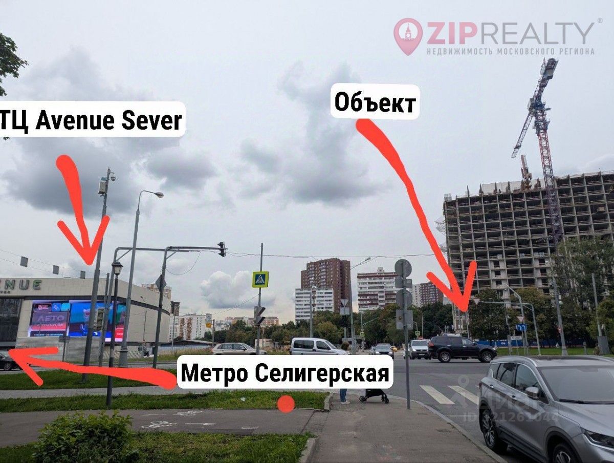 Объект расположен напротив входа в метро Селигерская на пересечении Дмитровского шоссе и ул. Селигерская. На первой линии.