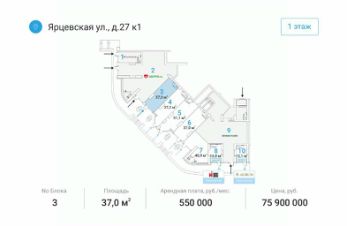 Лот: 36538. Помещение свободного назначения формата Street Retail в ЗАО Москвы. 1 минута пешком до станции метро Молодёжная. Отличная пешеходная и транспортная доступность. Расположено в крупном сложившемся жилом районе с высокой плотностью застройки и развитой инфраструктурой.