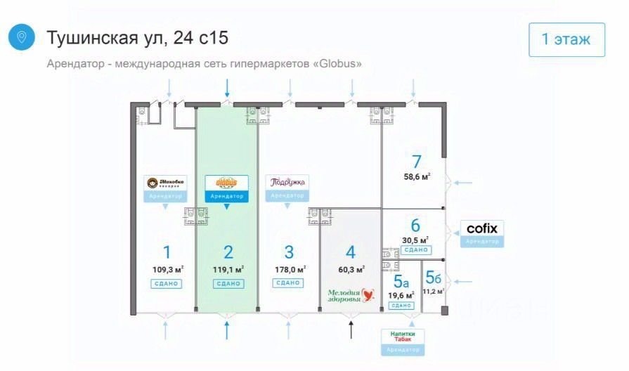 Лот: 36621. Помещение свободного назначения формата Street Retail в СЗАО Москвы. Шаговая доступность от ст. метро и МЦД "Тушинская" - менее 1 минуты пешком. Отличная пешеходная и транспортная доступность. Расположено в крупном сложившемся жилом районе с высокой плотностью застройки и развитой инфраструктурой.