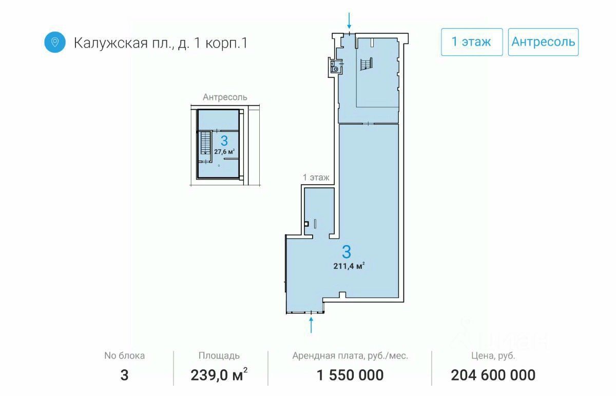 Планировка — свободная, перекрытия — ж/б, высота потолков на 1 этаже — 4,4 м, на антресоли — 2,0 м. Отлично подойдёт под любой вид деятельности: торговое помещение, магазин, ресторан, кафе, аптека, салон красоты, банк, офис продаж, кофейня и др.
