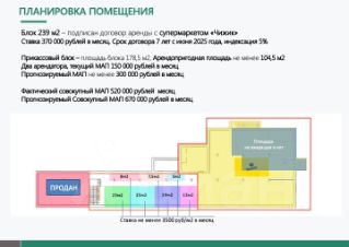 • Месячный арендный поток 370 000 рублей в месяц (НДС сверху)