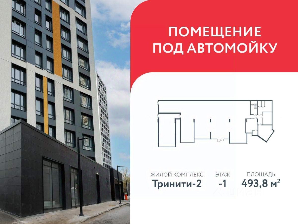 Предлагается коммерческое помещение ПОД АВТОМОЙКУ (мойку автомобилей) площадью 493,8 м2 на минус первом этаже 33-этажного жилого дома в ЖК "Тринити-2".