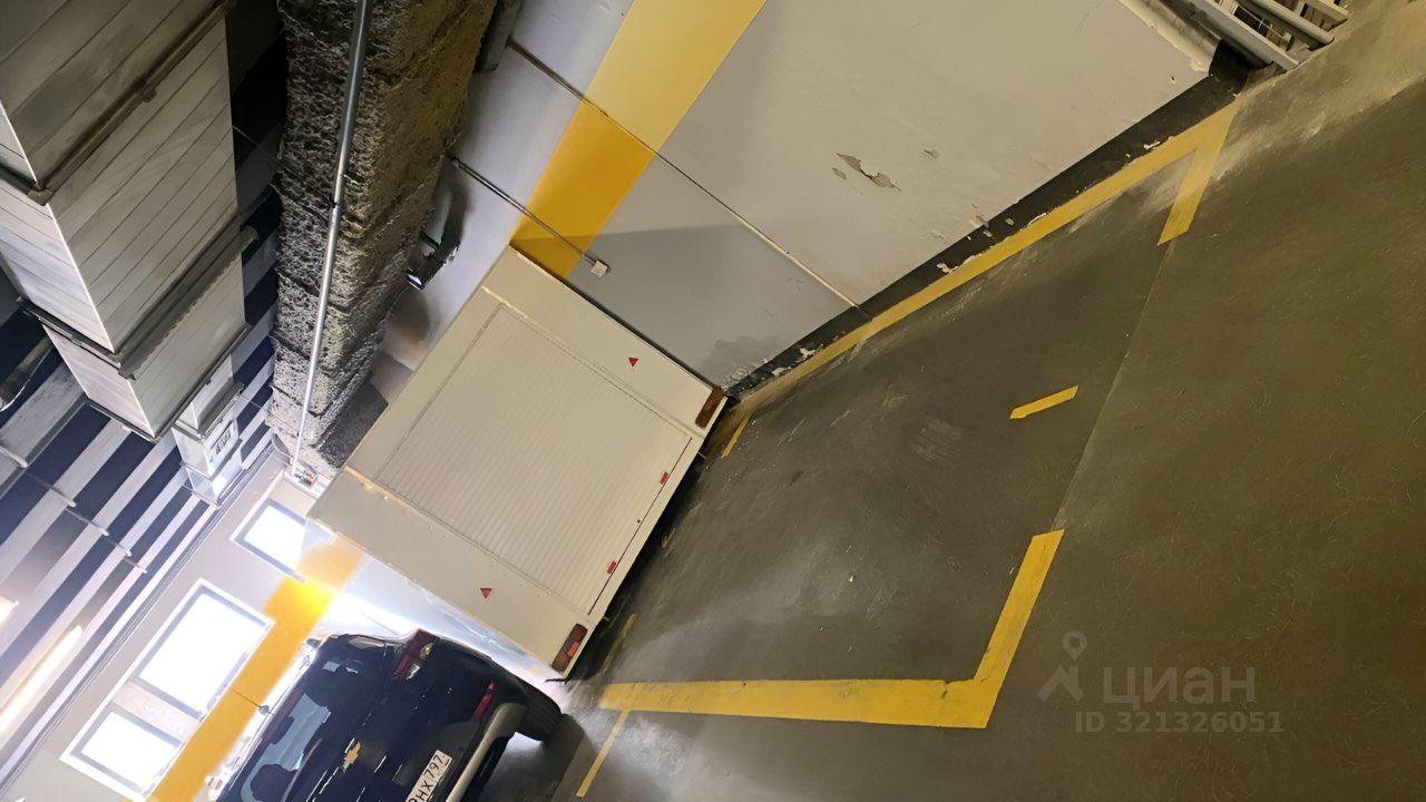 Двойное машиноместо на -1-м этаже (друг за другом). Широкое, слева нет других парковочных мест (удобно открывать двери, подходить), справа стена, но ширина места позволяет открывать правые двери.