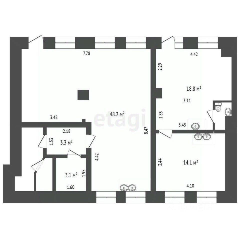 Соседи: ПВЗ, кафе и рестораны, много бизнес центров и учебных заведений - постоянный пешеходный и автомобильный трафик!