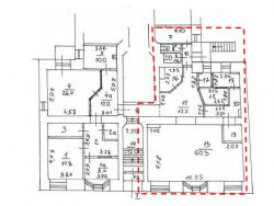 Технические параметры: 1 этаж 6-и этажного жилого дома, общей площадью 236 м2. Два входа, с первой линии и со двора, зальная планировка, высота потолков 3.3 м. Городские коммуникации. Выделенная мощность - 48 кВт. Состояние помещения: за выездом банка. Есть одно парковочное место.