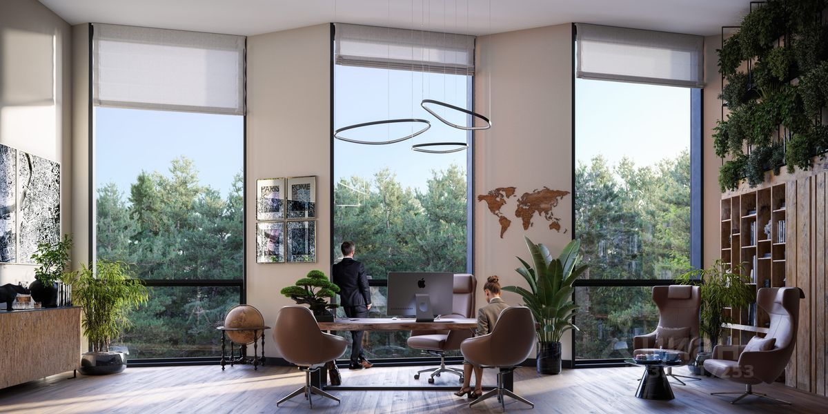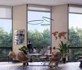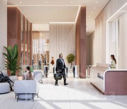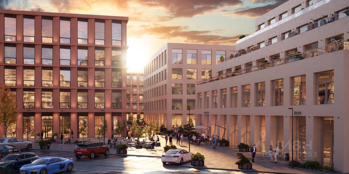 - На первых этажах офисных зданий просторные лобби с комфортной зоной ожидания, супермаркет, торговые помещения, отделения банков и сервисных служб, фитнес-студия