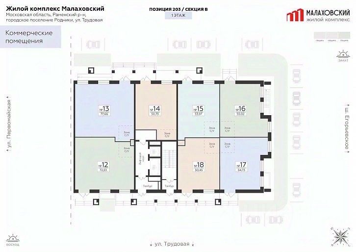 Продаётся помещение свободного назначения площадью 53.97 кв. м. в новостройке ЖК "Малаховский" по адресу Московская область, Раменский район, Родники Г/П, ул. Трудовая, уч. 8, 9, 11. Окна с видом во двор. Отдельный вход со двора. Стоимость помещения — 7 922 796 руб. без НДС. Способы оплаты и более подробная информация по телефону.