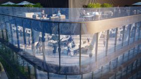 Видовой офис площадью 147.1 кв. м. с панорамным остеклением на две стороны света: север и восток, - ориентирован на улицы Бутырскую и Сущёвский Вал. Свободная планировка и минимальное количество несущих конструкций позволяют максимально эффективно зонировать пространство. Панорамное остекление обеспечивает максимальное количество естественного освещения в дневное время и динамичный вид на город в вечернее.