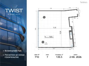 Twist небольшой и уютный. В нём всего 56 офисных лотов и девять этажей. В Twist широкий выбор офисов, которые производят впечатление на клиентов: от 50 кв. м до целых этажей разной площади, включая офисы со своими террасами.