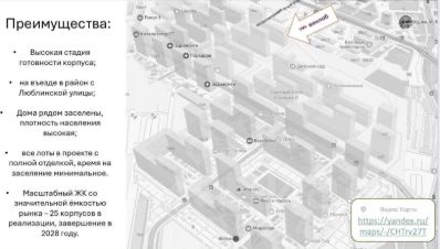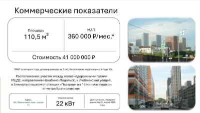 Первый этаж нового высотного жилого дома. Первая линия домов, хороший обзор со всех сторон. Помещение распложено в корпусе на новом въезде в ЖК с Люблинской улицы, рядом с помещением большая парковка. Высокая плотность застройки, дома рядом уже заселены. Лучшая локация в ЖК. Интенсивный автомобильный и пешеходный трафик вдоль помещения гарантирован. Люблинский парк от застройщика компании ПИК это новый современный густонаселённый жилой комплекс в пешей доступности от станции метро Братиславская и двух станций МЦД Перерва и Депо. В ЖК 54 жилых корпуса, три школы, семь детских садов и поликлиника. При этом все квартиры с чистовой отделкой, что гарантирует быстрое заселение жильцов.