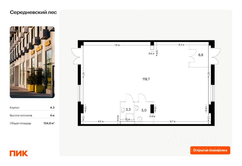 Выгода 5% на готовое помещение по промокоду KEY5 до 30 сентября. Продаётся нежилое помещение свободного назначения в новом жилом районе Середневский лес от ПИК. Открытая планировка, витринное остекление, удобный вход на уровне земли. Помещение номер 11. Продажа напрямую от застройщика.
