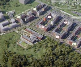 В проекте невысокие дома от 9 до 14 этажей. Здесь можно выбрать квартиру с французским балконом, а на первых этажах есть квартиры с террасами. В каждом дворе — уютные парки, детские и спортивные площадки. Внутри жилого квартала будет два детских сада, один из которых уже открылся, и школа.