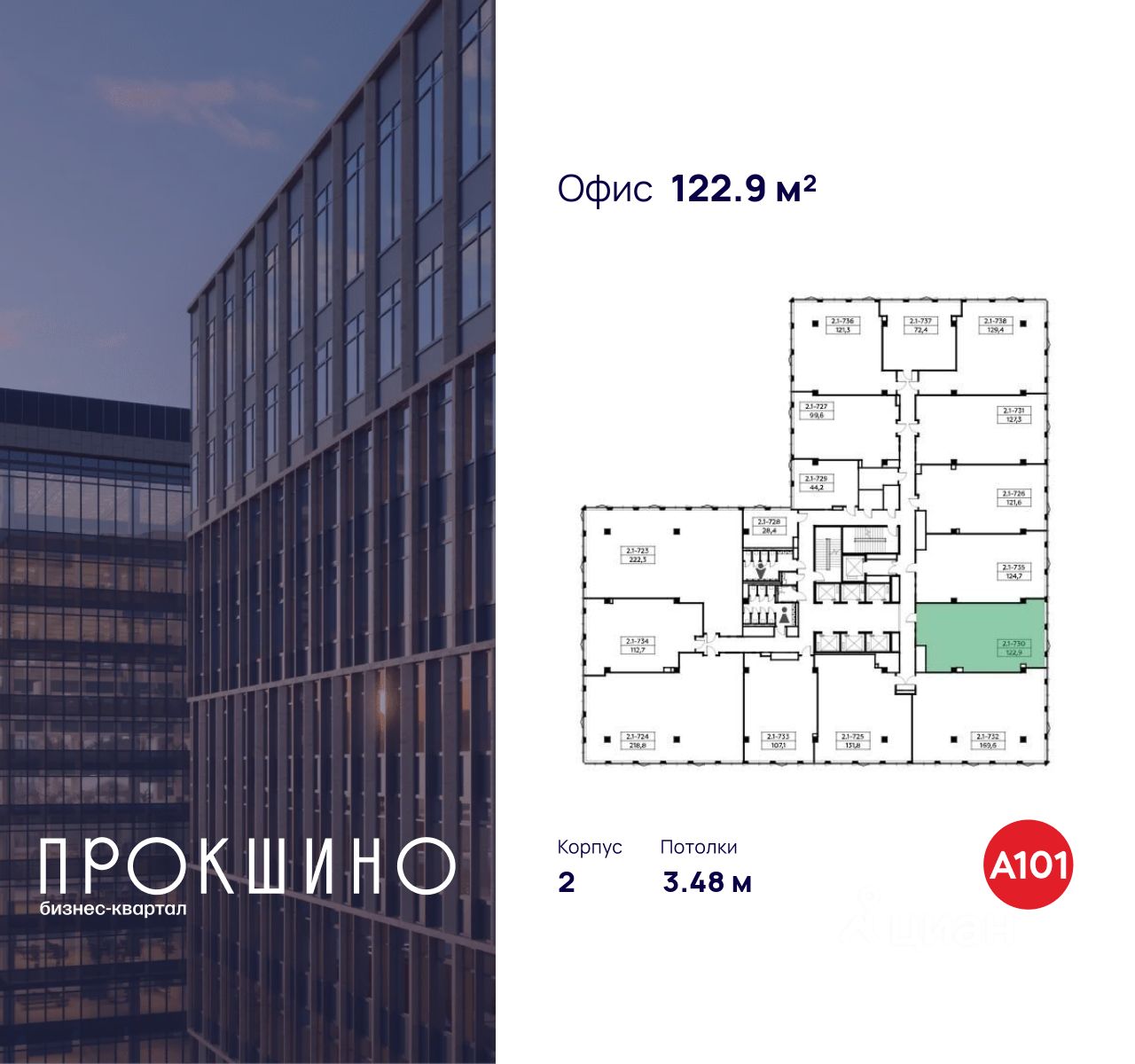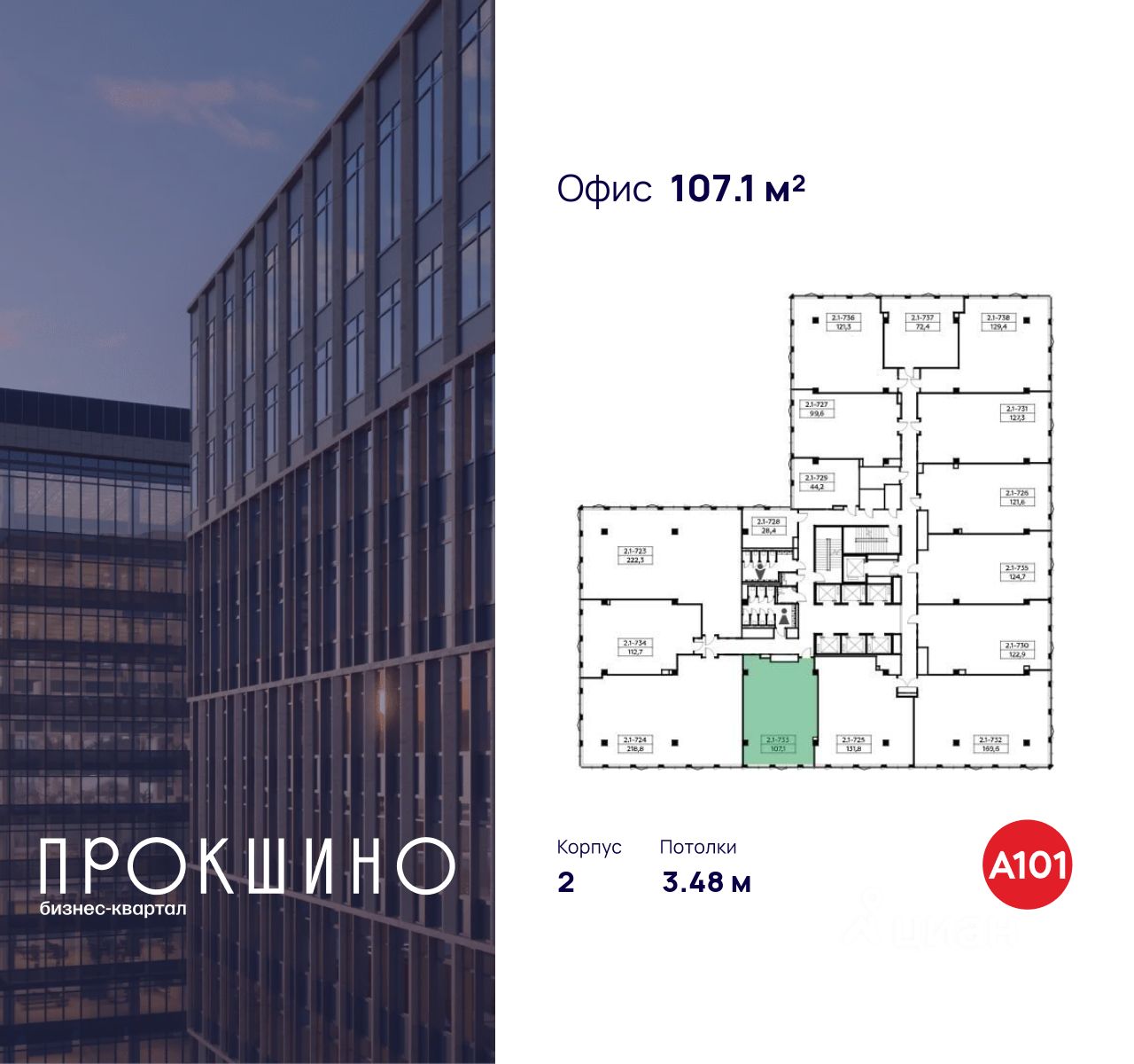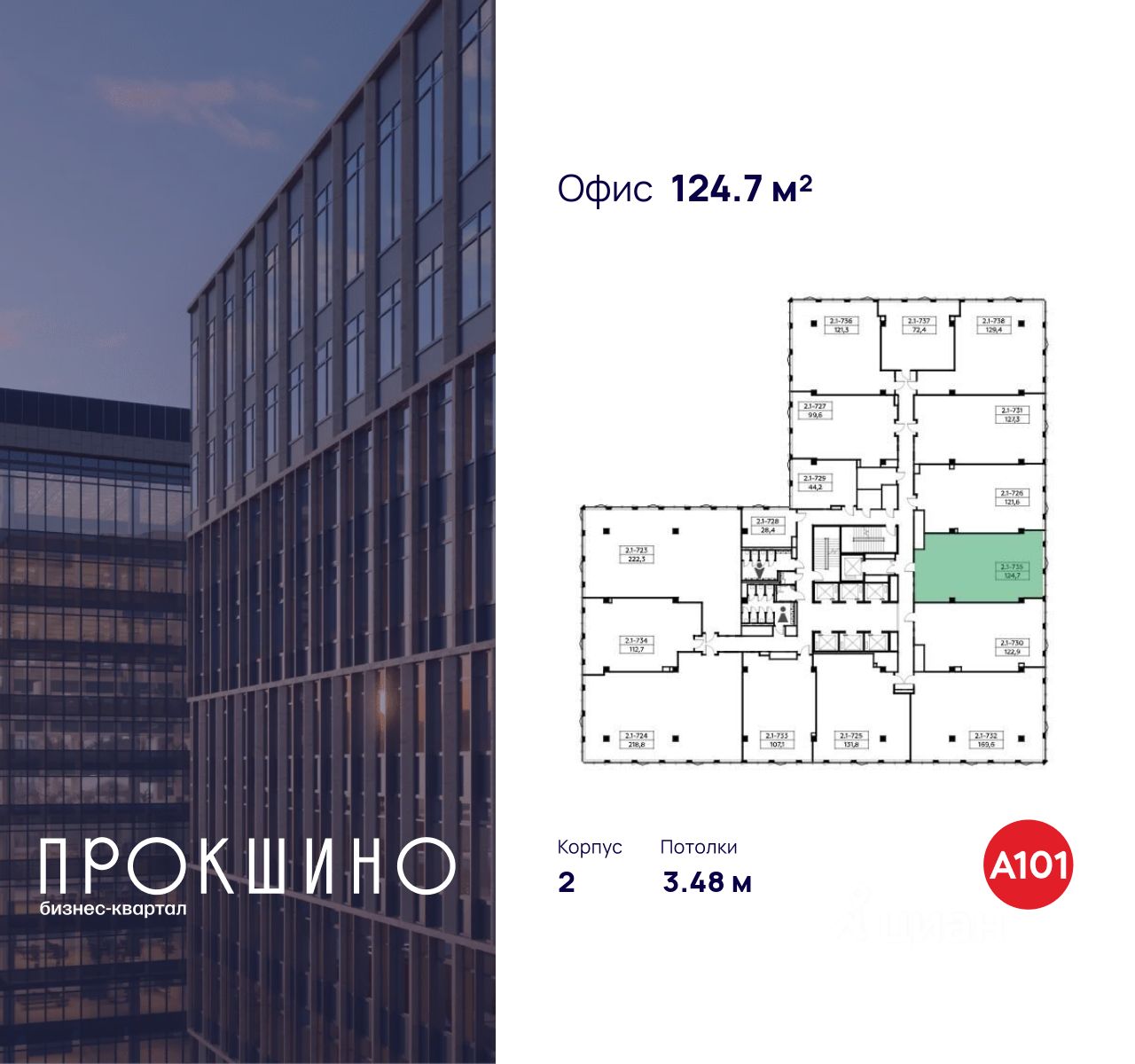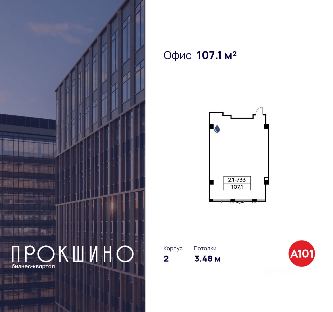 Продаётся офисные помещения площадью от 107.1 кв. м. в Бизнес-квартал "Прокшино". Без отделки. Окна с видом во двор и на улицу. Высота потолков 3.4 м. Выделенная электрическая мощность — 45 кВт. Общий вход с улицы. Способы оплаты и более подробная информация по телефону.