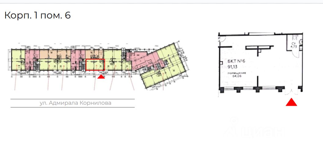 Помещение располагается вблизи ул. Адм Корнилова, в центре жилого массива. Интенсивный автомобильный и пешеходный трафик вдоль помещения.