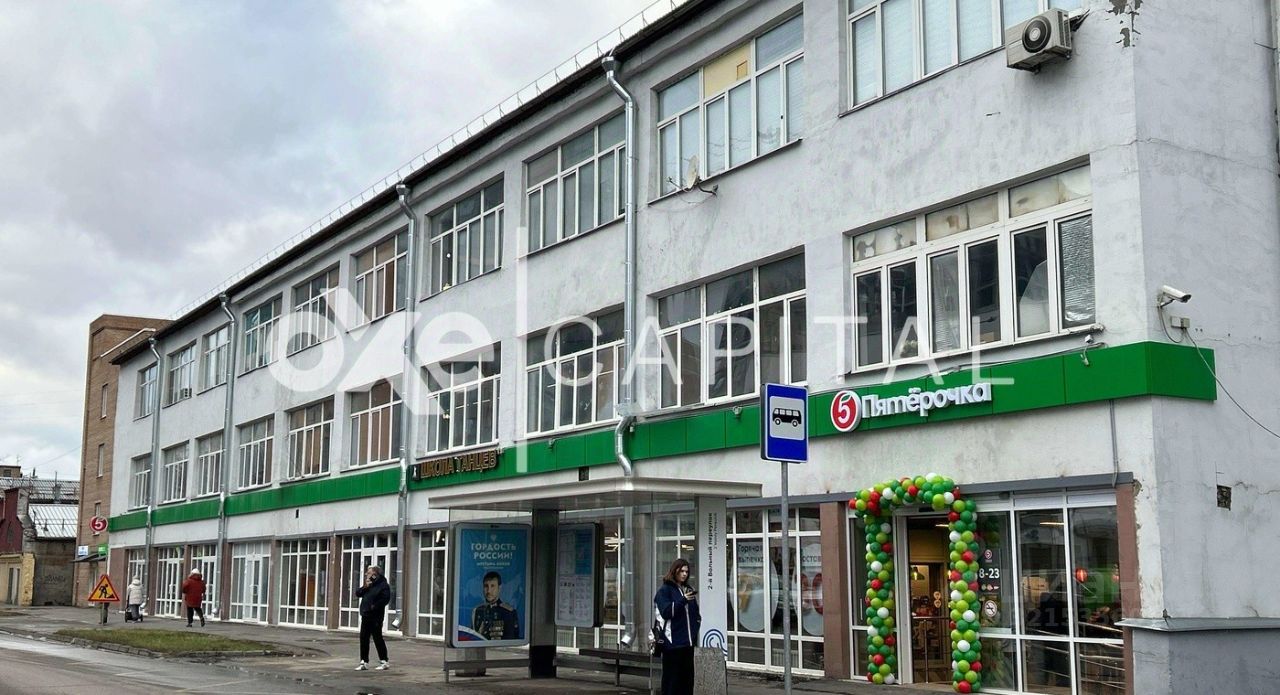 В административном здании общей площадью 3152,9 кв.м., расположенном на территории производственно-складского комплекса, продается помещение только 1-го этажа площадью 472,4 кв.м. с сетевым продуктовым арендатором Пятёрочка. Земельный участок под зданием площадью 9.909 кв.м. в аренде до 06.12.2061г. ВРИ участка - для размещения производственных и административных зданий. Здание 3-х этажное, кирпичное, без подвала.