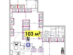 Первый этаж, общая площадь 103 кв.м. Отдельный входа с фасада. Витринное остекление. Вывеска на фасаде. Открытая зальная планировка, высота потолков - 5 метров, выделенная эл. мощность  30 кВт. Ввод в эксплуатацию: 4 кв. 2025 г.