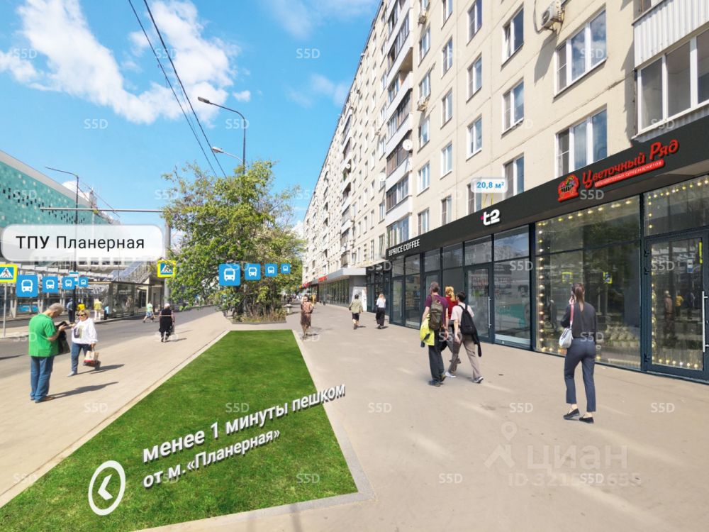 Предлагается в продажу помещение свободного назначения по адресу: г. Москва, СЗАО, Планерная улица 12к1. Помещение расположено в 70-ти метрах от станции метро Планерная. Прямая видимость от метро. Сверх-интенсивный пешеходный трафик на выходе из метро - вдоль фасада здания. Район с высокой плотностью застройки.