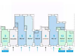 Общая площадь - 20,5 м² на 1-м этаже 5-ти этажного жилого дома. Открытая планировка, высота потолков - 4,5 м. Отдельная входная группа с фасада в блок с 1-й линии, есть входы со двора. Все городские инженерные коммуникации.