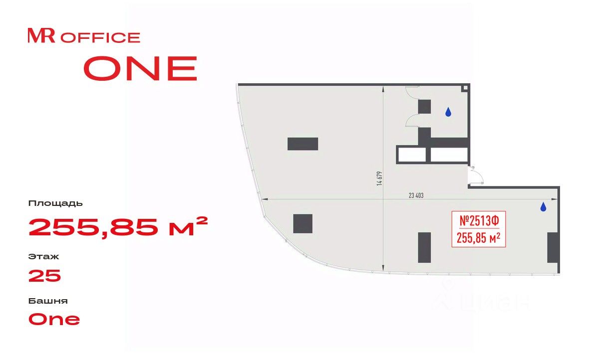 Продается офисное помещение 255.85 м² на 25 этаже в новом небоскребе класса Prime — БЦ ONE от MR Office.