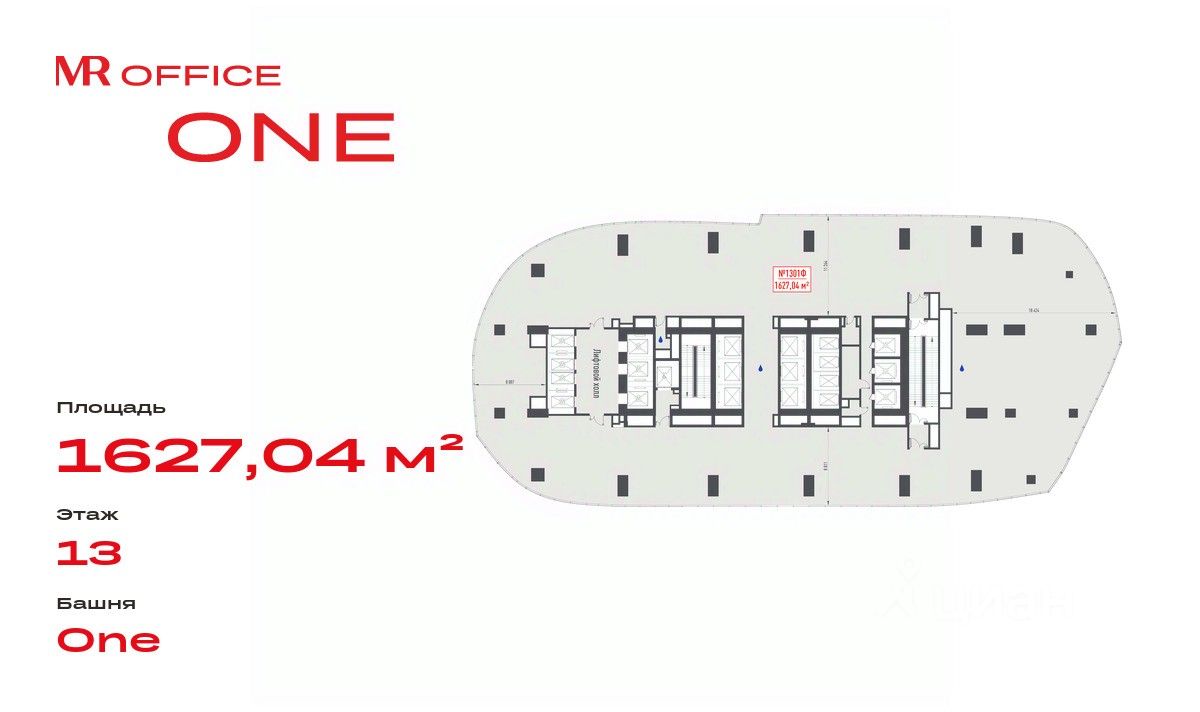 Продается офисное помещение 1627.04 м² на 13 этаже в новом небоскребе класса Prime — БЦ ONE от MR Office.