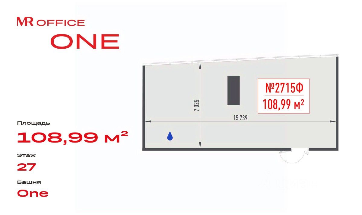 Продается офисное помещение 108.99 м² на 27 этаже в новом небоскребе класса Prime — БЦ ONE от бренда MR Office.