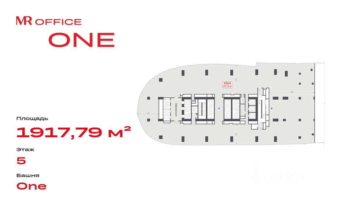 Продается офисное помещение 1917.79 м² на 5 этаже в новом небоскребе класса Prime — БЦ ONE от бренда MR Office.
