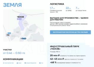 Продается участок промышленного назначения в индустриальном парке Чехов, Московская область, Чеховский городской округ.
