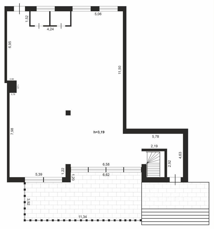 - Большие витрины в пол по всей длине объекта