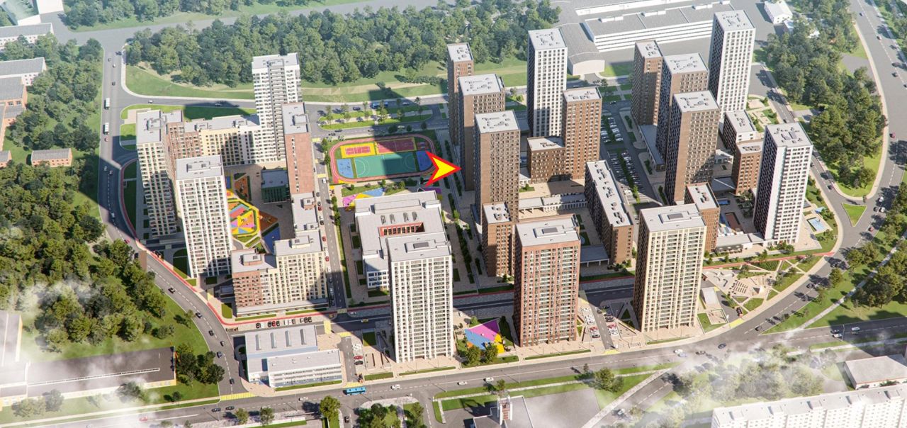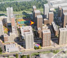 - в окружении высотных жилых корпусов;