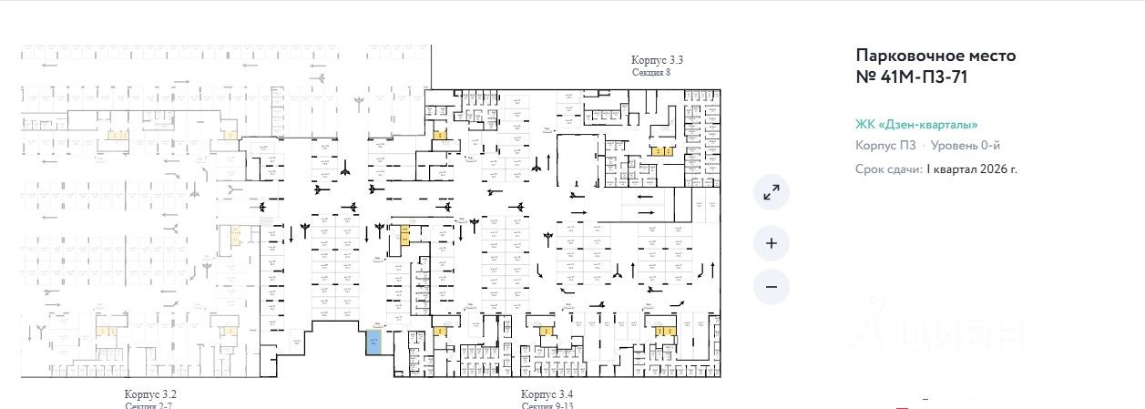Продам машино-место площадью 18,2 кв м в строящемся подземном паркинге ЖК Дзен-кварталы, по адресу: ЖК Дзен-кварталы 3.4, район Коммунарка, Новомосковский административный округ, Москва.