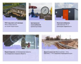 Электричество: договор с "Россети", подключение в течение 68 мес. по льготной программе до 150 кВт с возможностью увеличить мощность на платной основе или купить дополнительные мощности у нас по рыночной цене.
