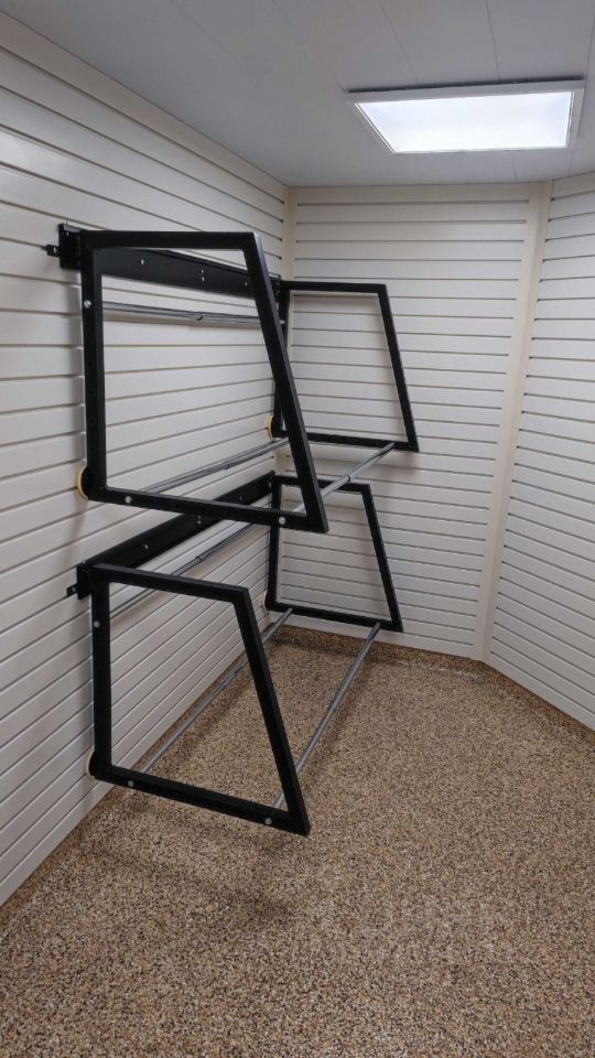 - Нагружайте по-максимуму! Выдерживает 300 кг на кв.м. Отлично подойдет для автомобильных шин (установлены соответствующие стеллажи) хранения вещей/чемоданов/велосипедов.