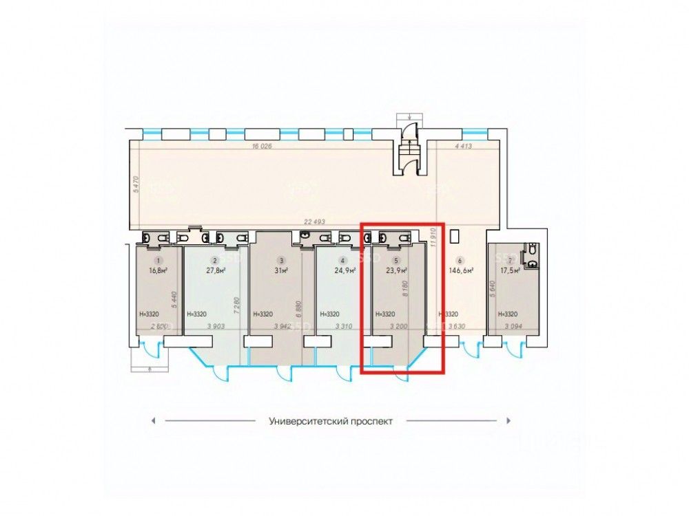 Технические характеристики: предлагаемая площадь - 23,9 кв.м. Витринное остекление. Высота потолков - 3,3 м. Электрическая мощность - 30кВт. Центральные коммуникации - водопровод, канализация, электричество, отопление.