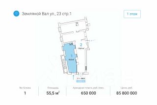 Описание помещения: Предлагаются в аренду и на продажу помещение на улице Земляной Вал, ЦАО, г. Москва. Аренда и продажа помещений у метро. Шаговая доступность от ст. метро "Курская" — 1 минута пешком. Отличная пешеходная и транспортная доступность.