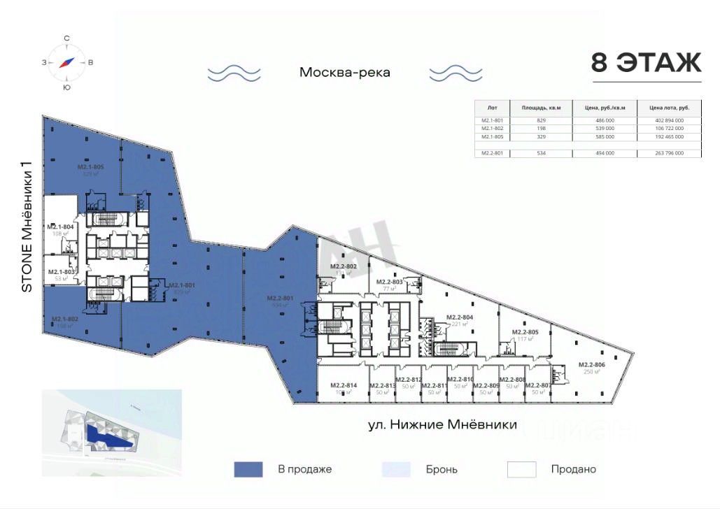Лот 928786 Предложение от Собственника! Предлагается к продаже офисный блок 329 м2 на 8-м этаже бизнес-центра STONE Мнёвники — это первый офисный
