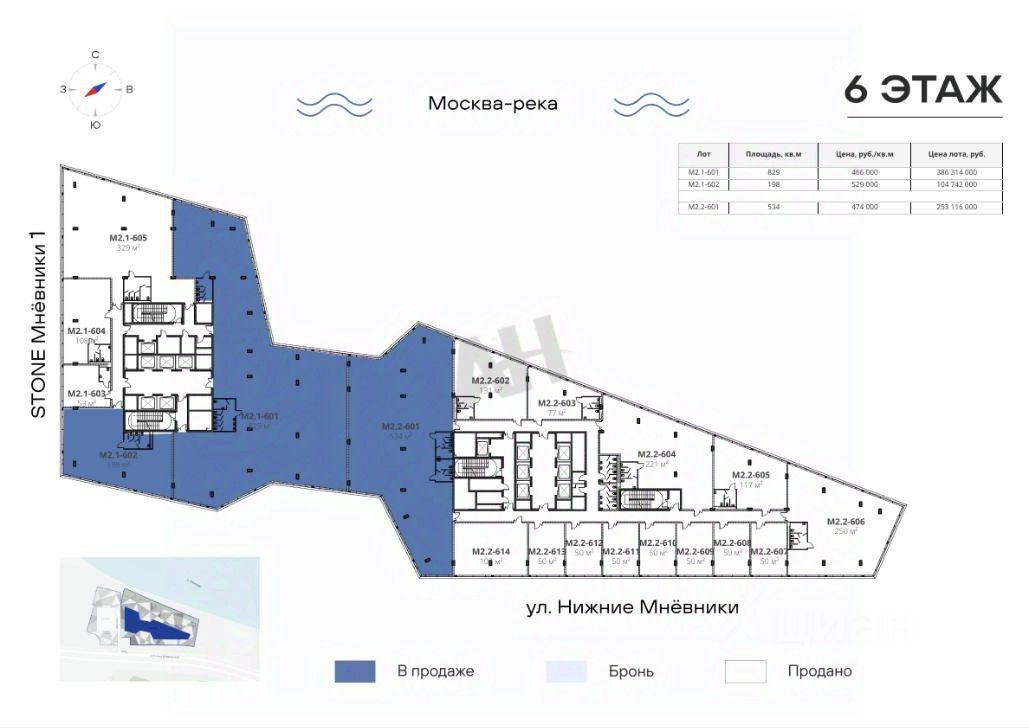 Лот 928715 Предложение от Собственника! Предлагается к продаже офисный блок 829 м2 на 6-м этаже бизнес-центра STONE Мнёвники — это первый офисный