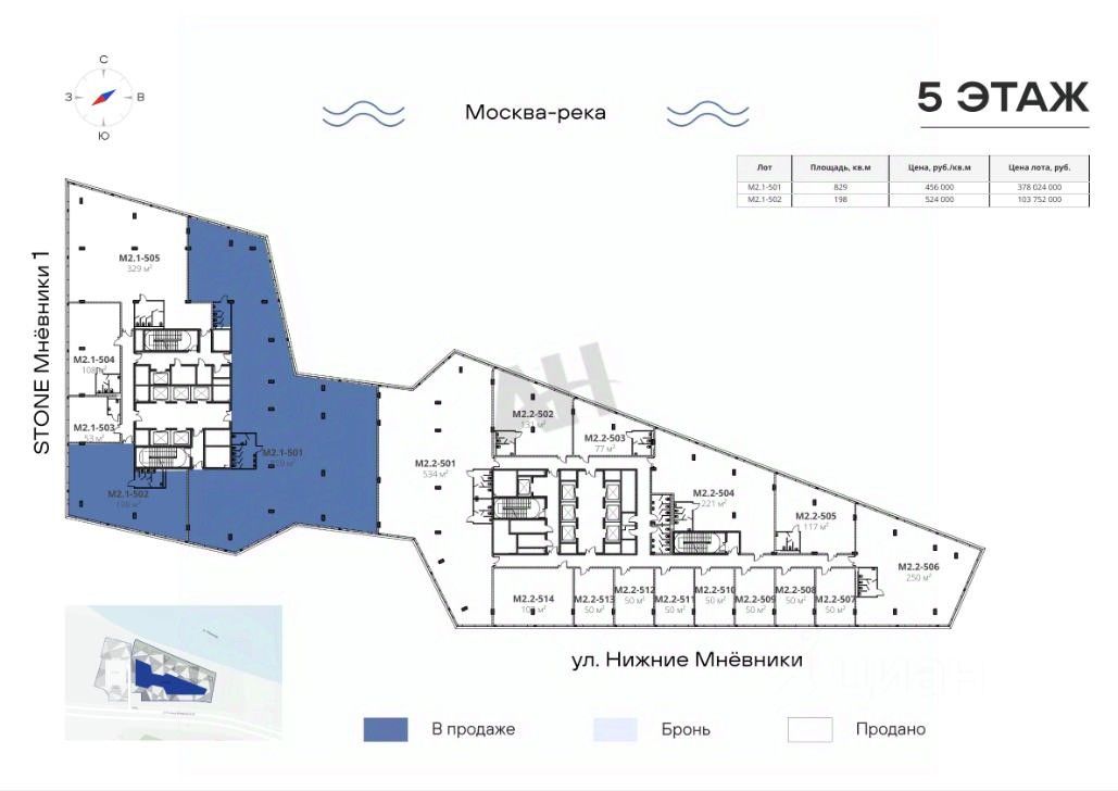 Лот 928713 Предложение от Собственника! Предлагается к продаже офисный блок 829 м2 на 5-м этаже бизнес-центра STONE Мнёвники — это первый офисный