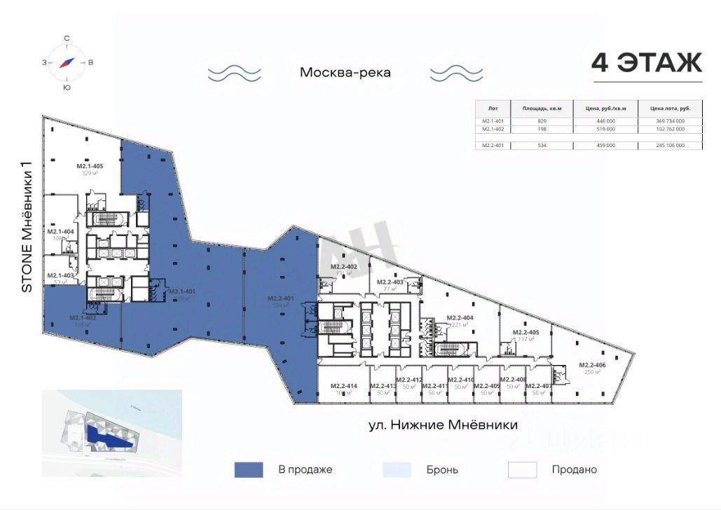 Лот 928712 Предложение от Собственника! Предлагается к продаже офисный блок 534 м2 на 4-м этаже бизнес-центра STONE Мнёвники — это первый офисный