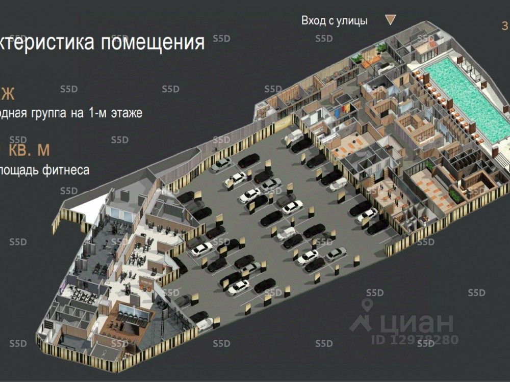 Прямой вход с улицы и паркинга. Удобный паркинг для клиентов и гостей клуба. Место под вывеску на фасаде и стеллах. Полностью готовый дизайн проект, комплект рабочей документации и бизнес модель.