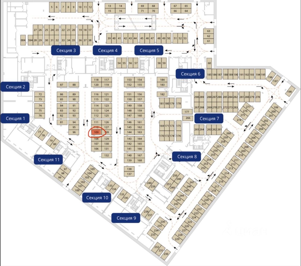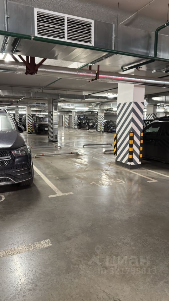 Машиноместо с быстрым и удобным доступом к большинству подъездов ЖК Серебряный Фонтан 16к3. Расположено на -1 этаже в месте, где никогда не течет, а также рядом со столбом на перспективу для электрокара.